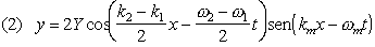 Tale onda è rappresentata in fig. 1. Si noti che l’ampiezza variabile dell’onda, che rappresenta l’inviluppo dell’onda progressiva, è essa stessa un’onda sinusoidale che si propaga nel mezzo con velocità