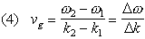 Se in un mezzo in cui si propaga un segnale la velocità di propagazione delle componenti sinusoidali è indipendente dalla frequenza, tutte le componenti del segnale viaggiano alla stessa velocità di fase v che, in questo caso, coincide con la velocità di propagazione del segnale. Se invece la velocità di propagazione varia con la frequenza (mezzo dispersivo), la situazione è più complessa, ed è necessario definire un nuovo parametro che rappresenta la velocità con la quale si propaga il segnale e l’energia ad esso associata. Per esprimere tale parametro, definito velocità di gruppo, considereremo il semplice caso di un segnale composto da due onde sinusoidali progressive di uguale ampiezza e di frequenza leggermente diversa, aventi pertanto velocità di fase diverse: (1) y = y1 + y2 = Ysen(k1x